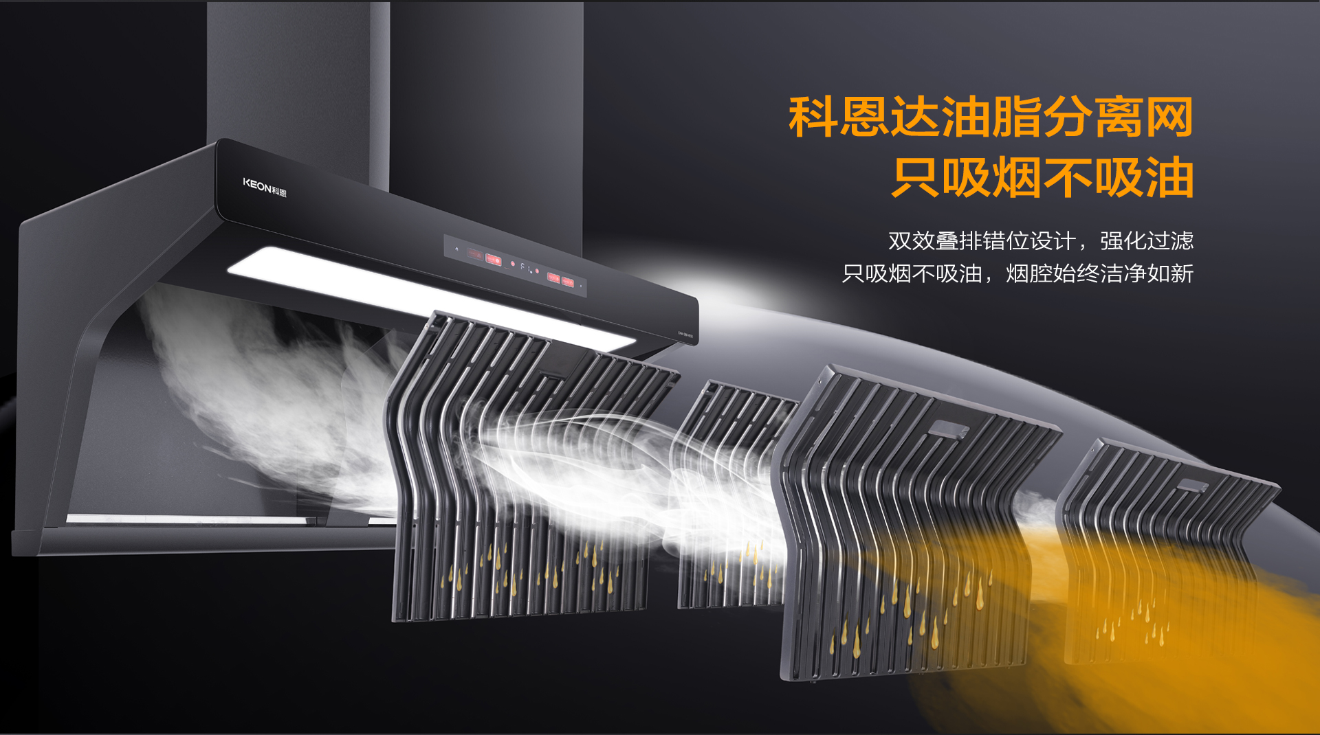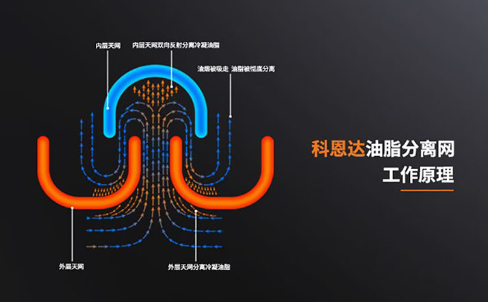 2023年6月,科恩免清洗煙機問世,科恩達網板再添核心技術,科恩達油脂分離網就此誕生。科恩達油脂分離網采用易潔太空壓鑄鋁材,經過酸洗-噴砂工藝加之特氟龍噴涂最后高溫燒結,不僅不沾油、易清潔更好打理。其采用獨特的多層疊排U型錯層結構設計,實現油脂分離度高達96%以上(第三方權威機構測定),它在高效解決油煙油脂分離和冷凝的同時,還能很好地起到防火阻燃的效果,更好解決廚房安全隱患,徹底告別煙機內部清洗難題,保證煙機持久大吸力,延長煙機使用壽命。