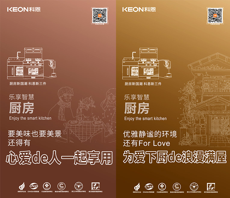 國潮正當(dāng)時(shí),隨著國貨的崛起,消費(fèi)者更加開始關(guān)注高端新國貨!科恩集成灶為千萬家庭打造樂享智慧廚房空間,創(chuàng)新設(shè)計(jì)、高端品質(zhì)、優(yōu)良服務(wù)、優(yōu)質(zhì)體驗(yàn)贏得了用戶的高度認(rèn)可。順應(yīng)“國潮”趨勢,提煉“新國貨新潮牌”理念,結(jié)合“廚房新國潮,科恩新三件”,以滿足現(xiàn)代年輕群體對國貨的審美與品質(zhì)認(rèn)知,以匠心科技實(shí)現(xiàn)現(xiàn)代廚房功能需求。
