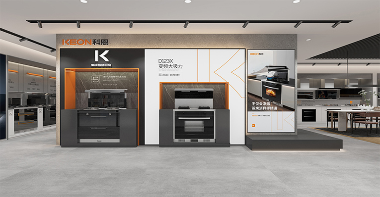 簡約、大氣、精美的視覺沖擊讓人印象深刻,通過“視覺+產(chǎn)品+體驗(yàn)”的融合,以差異化彰顯品牌個(gè)性,讓消費(fèi)者通過感知產(chǎn)品來感受品牌,對多個(gè)區(qū)域進(jìn)行場景重構(gòu),產(chǎn)品陳列區(qū)、廚房場景、品牌背書、洽談區(qū)等,通過模塊化的方式,將核心產(chǎn)品模塊以及開放式廚房體驗(yàn)場景植入門店,體現(xiàn)了更具應(yīng)用價(jià)值的“廚房新國潮,科恩新三件”!