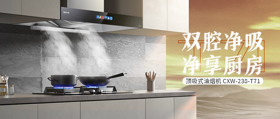 科恩T71油煙機采用超薄頂吸式,可輕松“隱身”,廚房更具美感。