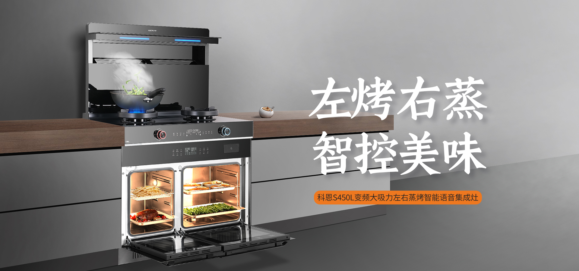 科恩S系列全系搭載5.2Kw大火力,可媲美飯店后廚,讓你在家就能烹飪出美味佳肴。