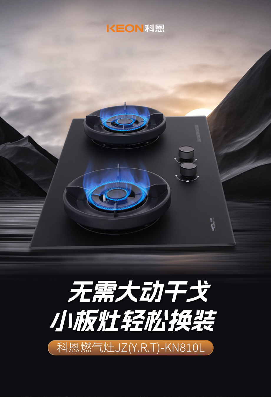小巧換裝,火力強勁。舊灶換裝怕麻煩,拆改費時又費錢,科恩KN810L小板灶,無需改動輕松換,5.2KW大火力,爆炒鮮香瞬間出,環抱式聚能環,防風聚熱更高效,68%一級熱效率,節能省氣降成本。0-170°寬域調火,慢燉爆炒皆適配。耐用防污,安全護航。灶臺油污難清理,爐頭易銹壽命短,亞膜水霧鋼化玻璃,油砂納米不沾油,航空級鋁合金爐頭,抗腐防銹耐高溫,全銅小火蓋設計,經久耐用更省心,黑色鏡面防滑旋鈕,防燙隔熱更安全。意外熄火斷氣源,守護廚房每一刻。