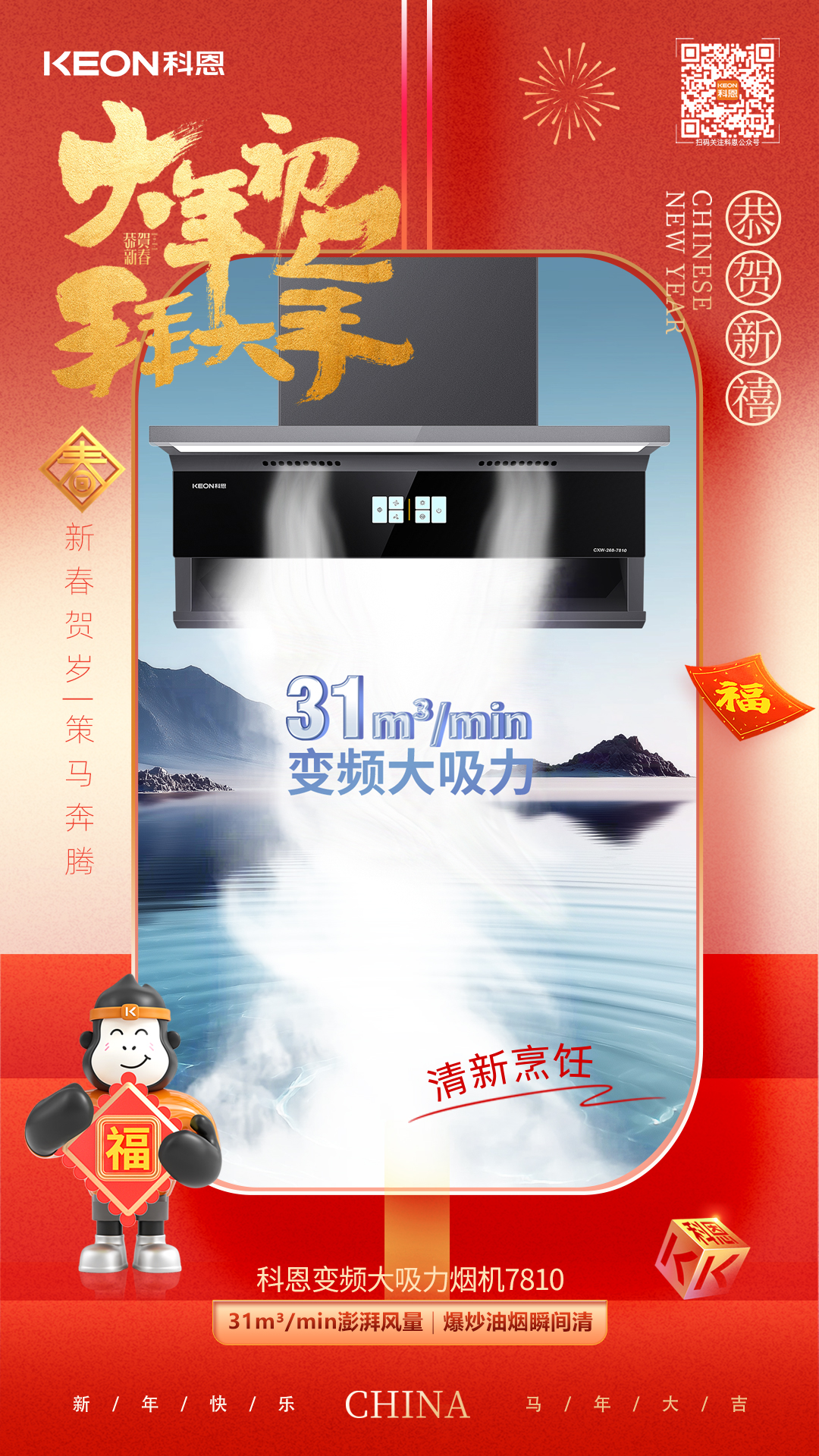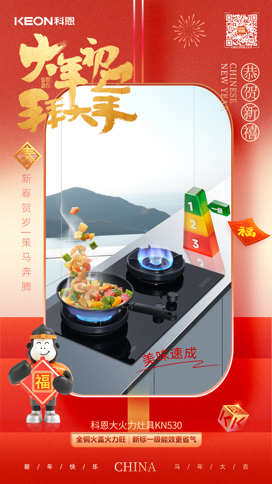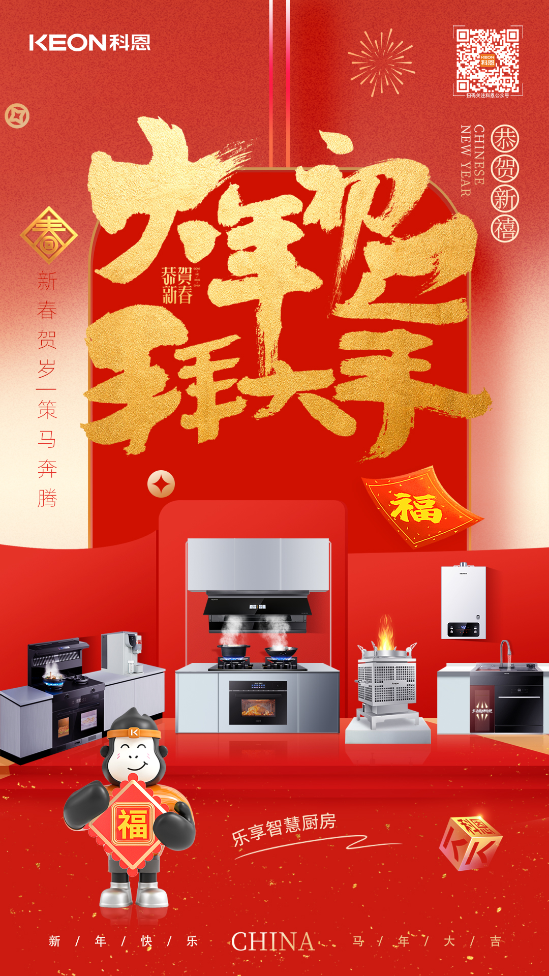 從無(wú)煙烹飪到精準(zhǔn)控火,從恒溫?zé)崴饺轿话踩U希贫鲝N電以硬核實(shí)力賦能春節(jié)廚房。讓掌勺人告別油煙困擾,讓家人暢享健康美味,讓每一次相聚都充滿安心與愜意。新歲啟封,科恩與你一同守護(hù)團(tuán)圓煙火氣,愿三餐四季皆安康,廚房有暖,生活有甜!