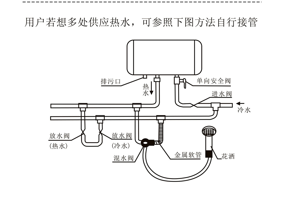 適應水壓范圍廣,熱水容量大,可同時供給多個用水點用水