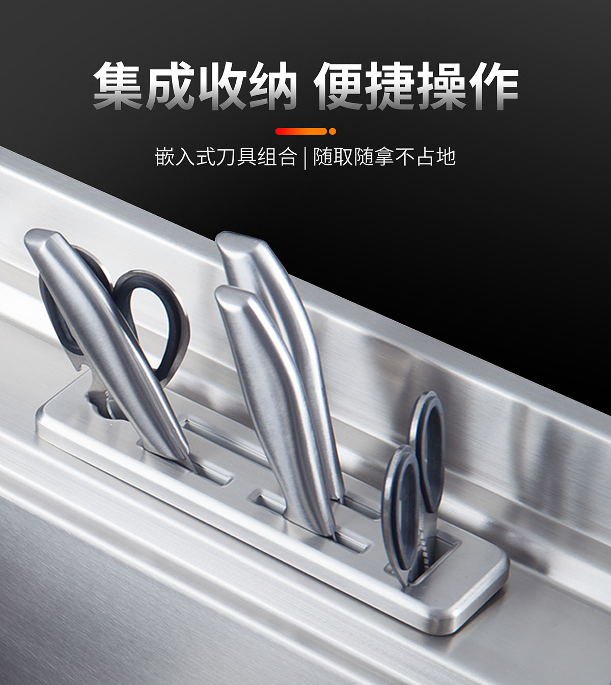 集成收納 便捷操作,嵌入式刀具組合,隨取隨拿不占地