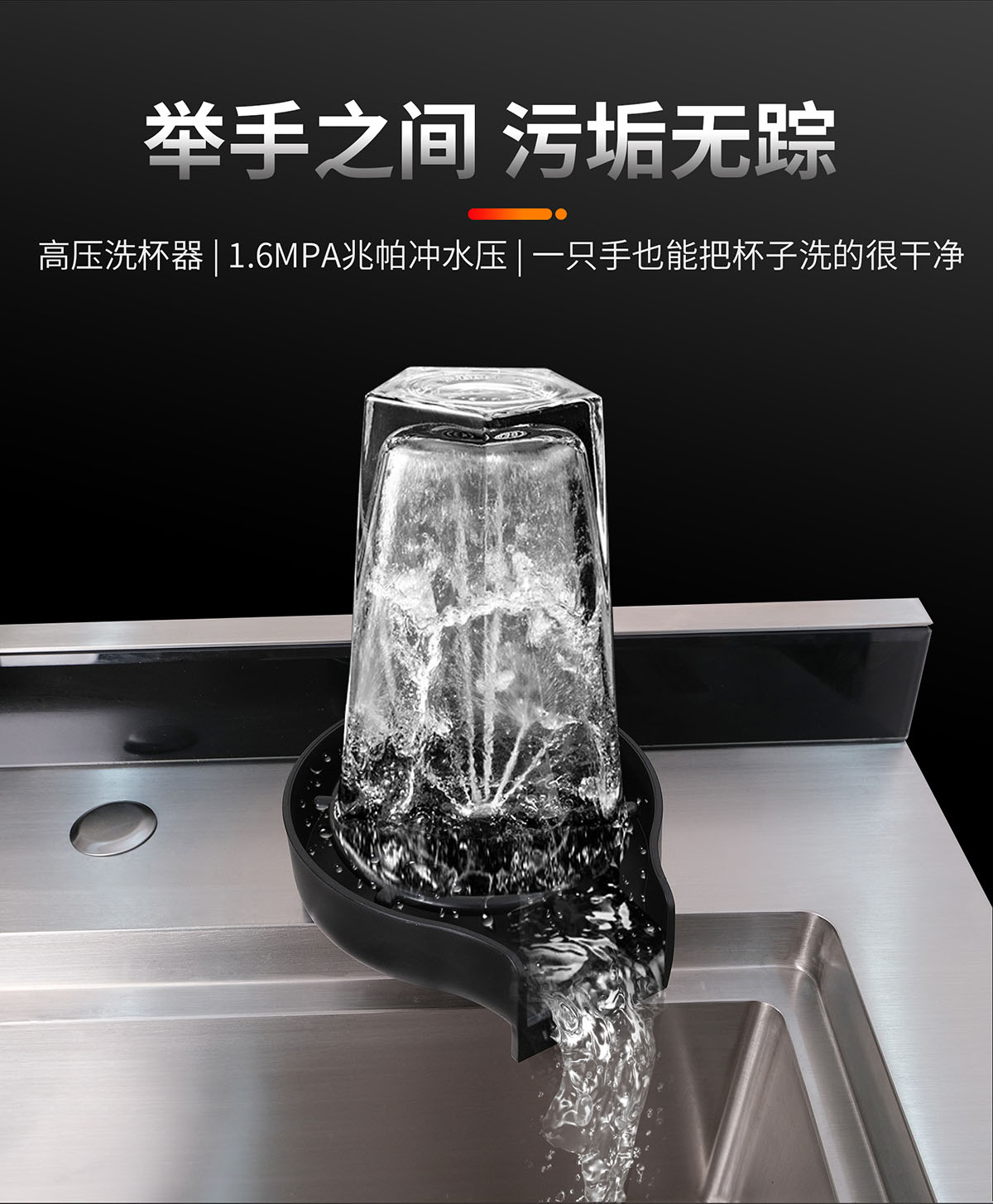 高壓洗杯器,1.6MPA兆帕沖水壓,舉手之間 污垢無蹤