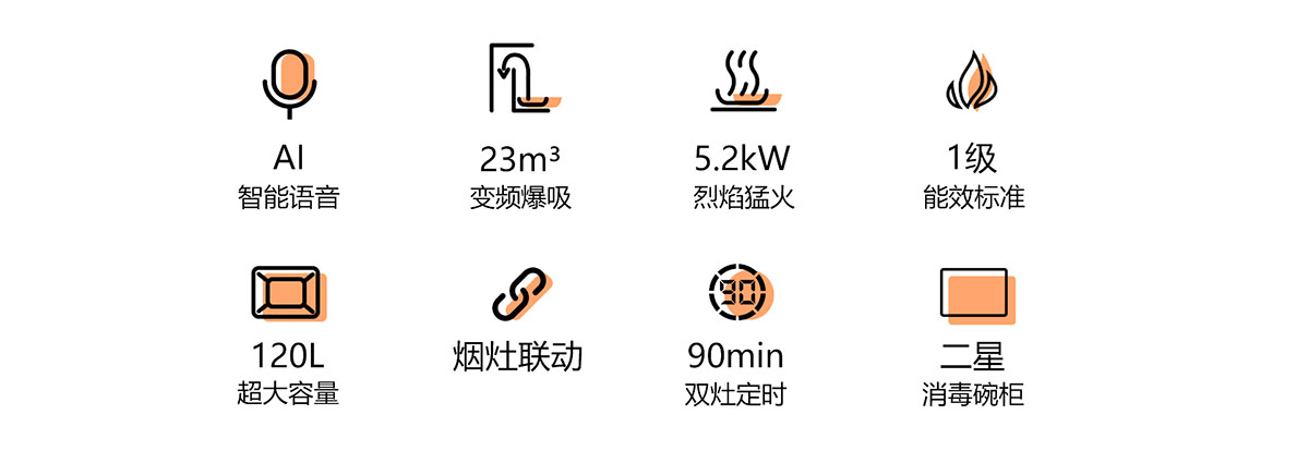 煙灶聯(lián)動,點火自動排煙,三分鐘延時,自動掃除殘留油煙