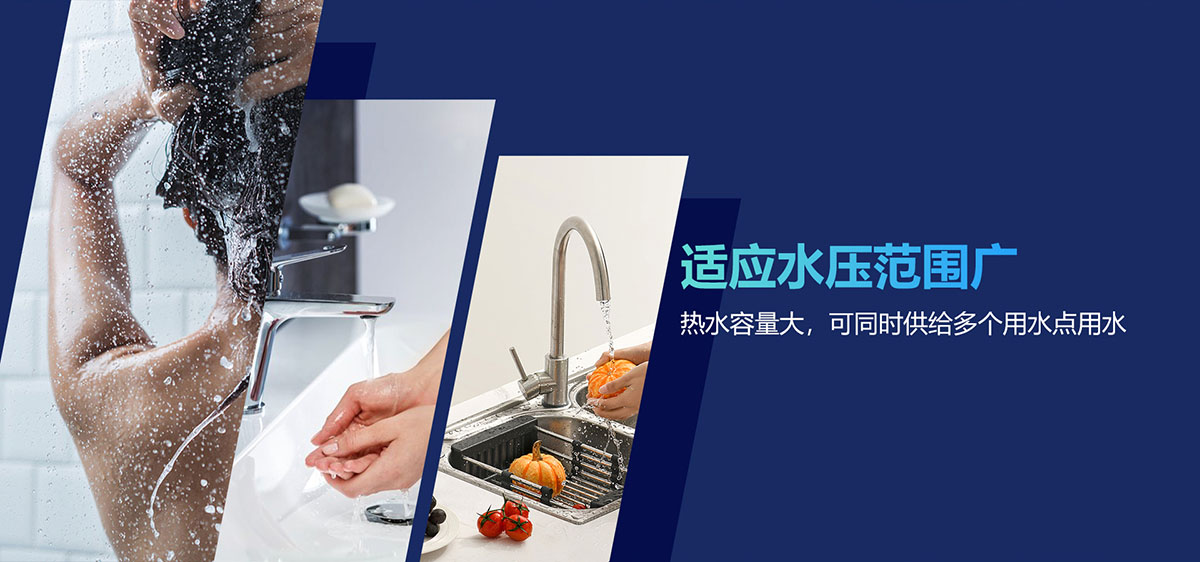適應水壓范圍廣,熱水容量大,可同時供給多個用水點用水