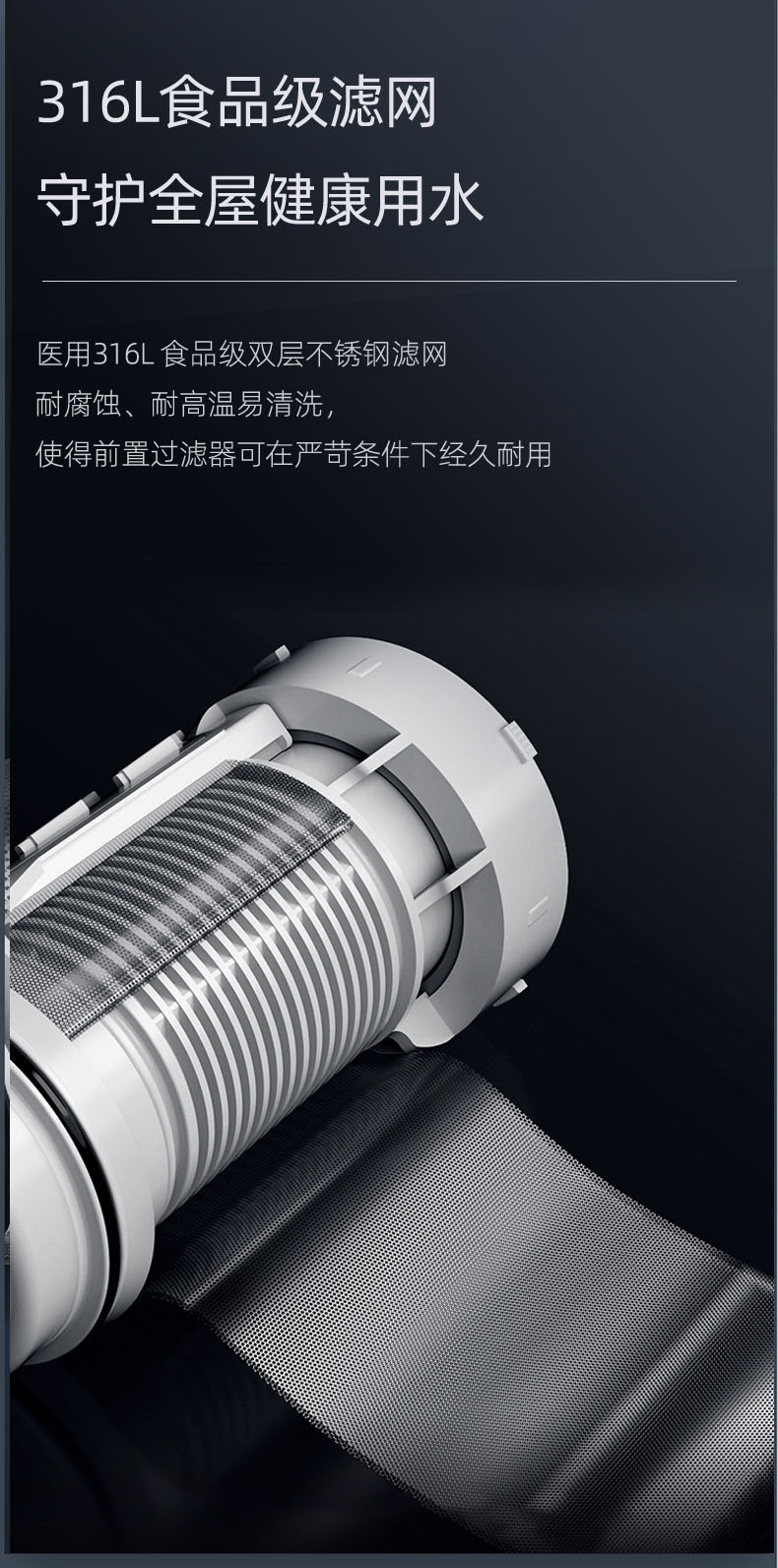 40μm過濾精度,精密不銹鋼濾網,提升水質