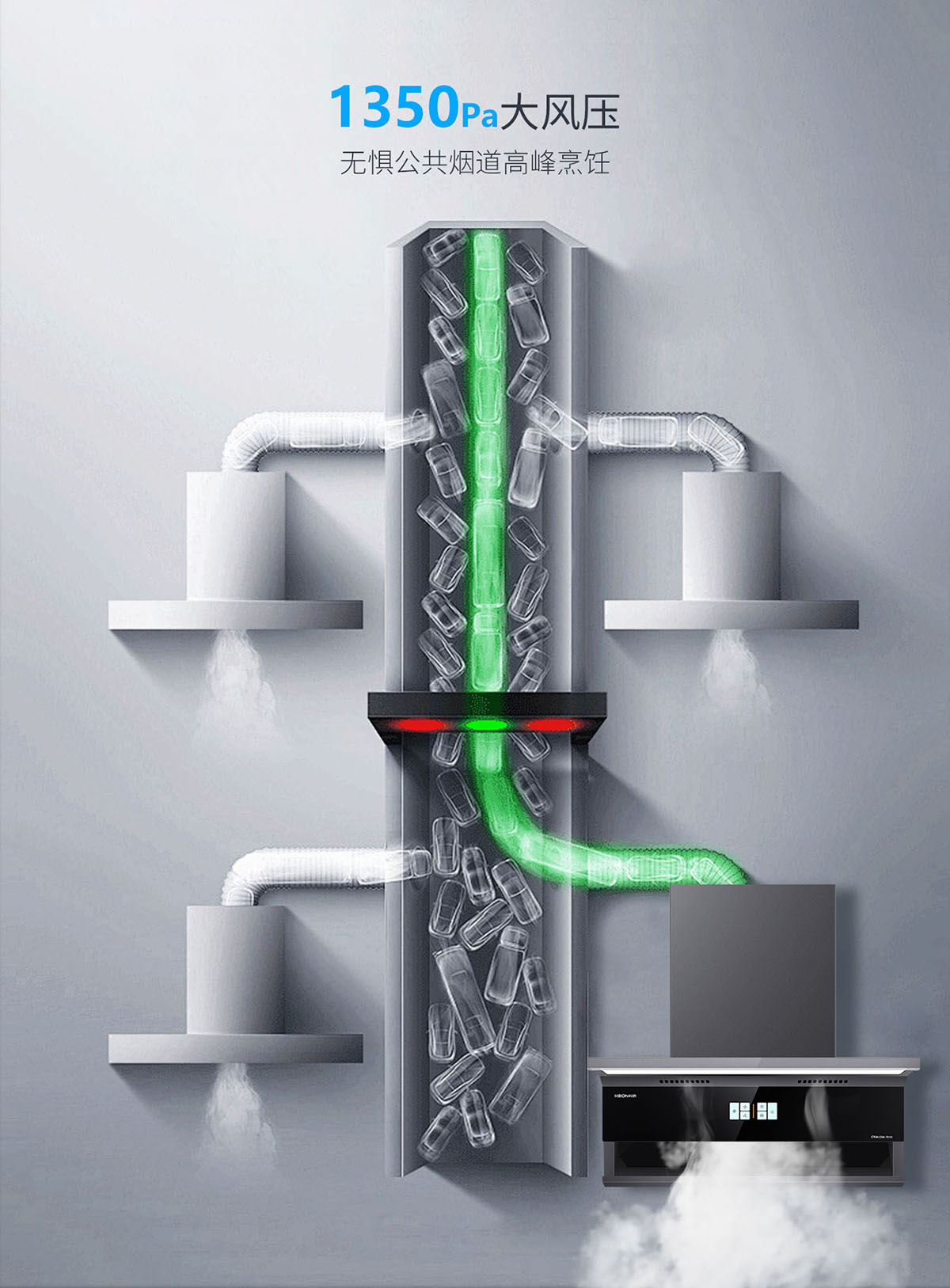 1350Pa大風(fēng)壓,無懼公共煙道高峰烹飪