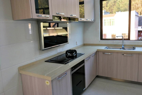 科恩浙江經(jīng)銷商提供的煙灶消+電烤箱、蒸汽爐廚房實(shí)景圖